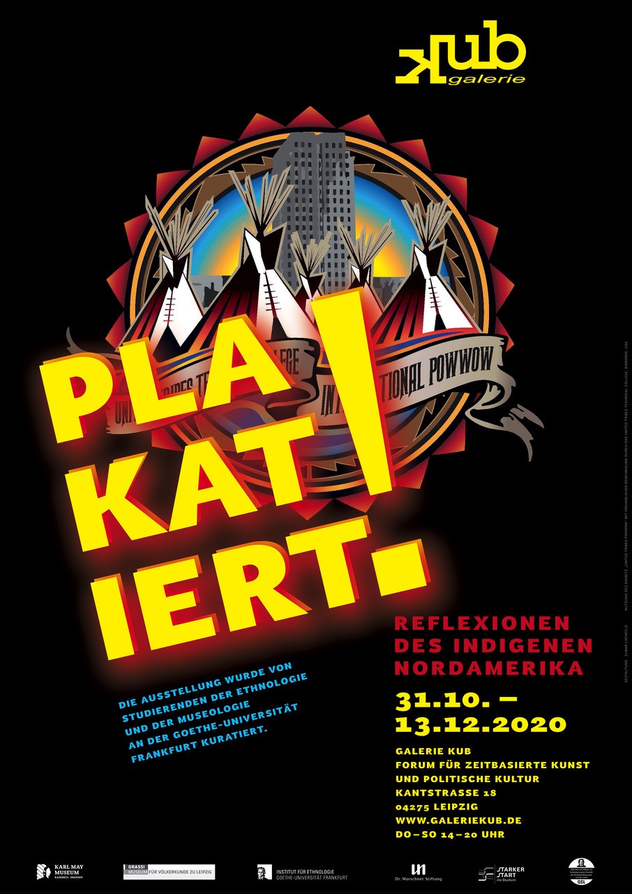 In late October, 2020 we opened the exhibition “Posted: Reflection of Indigenous North America,” at galerie KUB in Leipzig. Two days later, the Covid fall lockdown struck and all museums in Saxony had to close. The situation will probably not improve before the exhibit ends on 28 February. In order to balance out the canceled opening, guided tours, and lectures, we held an online event on 12 February. The panel discussion was held in German and hosted by DAI Saxony on YouTube. Moderated by SES director Leontine Meijer-van Mensch, Catharina Wallwaey (one of the original Frankfurt student curators of the show), Markus Lindner, (instructor in North American cultural anthropology at Goethe Universität Frankfurt), Robin Leipold (acting director of the Karl May Museum Radebeul), and I worked through questions anchored around the topics of the exhibit.